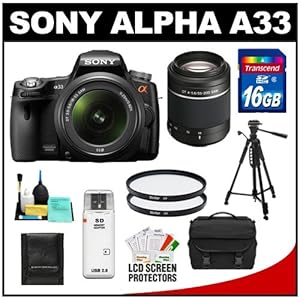 you want to buy Sony Alpha A33 SLTA33L 14.2 MP Translucent Mirror Technology Digital SLR Camera with 18-55mm Lens & 55-200mm Lenses + 16GB Card + Tripod + Case + UV Filters + Accessory Kit,yes ..! you comes at the right place. you can get special discount for Sony Alpha A33 SLTA33L 14.2 MP Translucent Mirror Technology Digital SLR Camera with 18-55mm Lens & 55-200mm Lenses + 16GB Card + Tripod + Case + UV Filters + Accessory Kit in amazon.You can choose to buy a product and Sony Alpha A33 SLTA33L 14.2 MP Translucent Mirror Technology Digital SLR Camera with 18-55mm Lens & 55-200mm Lenses + 16GB Card + Tripod + Case + UV Filters + Accessory Kit at the Best Price Online with Secure Transaction in amazon...