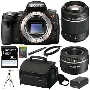 you want to buy Sony Alpha A55 DSLR A55 SLT-A55V 16.2MP DSLR with Translucent Mirror Technology and 3D Sweep Panorama with Sony SAL552002 Telephoto Zoom Lens and SAL50F18 50mm Lens + Sony Gadget Bag + Sony 8GB SD Card + Replacememtn NPFW50 Battery + Accessory Kit,yes ..! you comes at the right place. you can get special discount for Sony Alpha A55 DSLR A55 SLT-A55V 16.2MP DSLR with Translucent Mirror Technology and 3D Sweep Panorama with Sony SAL552002 Telephoto Zoom Lens and SAL50F18 50mm Lens + Sony Gadget Bag + Sony 8GB SD Card + Replacememtn NPFW50 Battery + Accessory Kit in amazon.You can choose to buy a product and Sony Alpha A55 DSLR A55 SLT-A55V 16.2MP DSLR with Translucent Mirror Technology and 3D Sweep Panorama with Sony SAL552002 Telephoto Zoom Lens and SAL50F18 50mm Lens + Sony Gadget Bag + Sony 8GB SD Card + Replacememtn NPFW50 Battery + Accessory Kit at the Best Price Online with Secure Transaction in amazon...