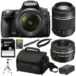 you want to buy Sony Alpha SLT-A55V/L 16.2MP DSLR with Translucent Mirror Technology and 3D Sweep Panorama and 18-55mm F3.5-5.6 Lens with Sony SAL552002 Telephoto Zoom Lens and SAL50F18 50mm Lens + Accessory Kit,yes ..! you comes at the right place. you can get special discount for Sony Alpha SLT-A55V/L 16.2MP DSLR with Translucent Mirror Technology and 3D Sweep Panorama and 18-55mm F3.5-5.6 Lens with Sony SAL552002 Telephoto Zoom Lens and SAL50F18 50mm Lens + Accessory Kit in amazon.You can choose to buy a product and Sony Alpha SLT-A55V/L 16.2MP DSLR with Translucent Mirror Technology and 3D Sweep Panorama and 18-55mm F3.5-5.6 Lens with Sony SAL552002 Telephoto Zoom Lens and SAL50F18 50mm Lens + Accessory Kit at the Best Price Online with Secure Transaction in amazon...