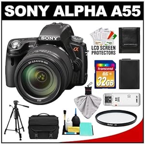 you want to buy Sony Alpha A55 Translucent Mirror Technology Digital SLR Camera Body & 18-250mm DT Lens with 32GB Card + Battery + Filter + Case + Tripod + Accessory Kit,yes ..! you comes at the right place. you can get special discount for Sony Alpha A55 Translucent Mirror Technology Digital SLR Camera Body & 18-250mm DT Lens with 32GB Card + Battery + Filter + Case + Tripod + Accessory Kit in amazon.You can choose to buy a product and Sony Alpha A55 Translucent Mirror Technology Digital SLR Camera Body & 18-250mm DT Lens with 32GB Card + Battery + Filter + Case + Tripod + Accessory Kit at the Best Price Online with Secure Transaction in amazon...